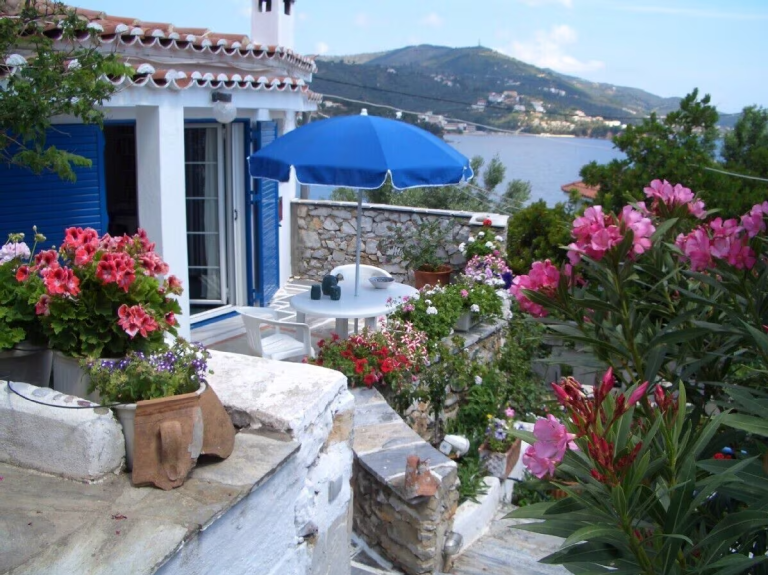 Villa Hibiscus ist umgeben von einem Blütenparadies mit Blick auf das Meer, auf die vorgelagerten Inseln und den Ort Skiathos. Von Ihrer Terrasse gehen Sie durch einen Olivenhain einige Treppen abwärts und gelangen so zu einem Privatstrand zu Ihrer Nutzung, um dann schon früh morgens das erste Bad in der azurblauen Ägäis zu genießen.