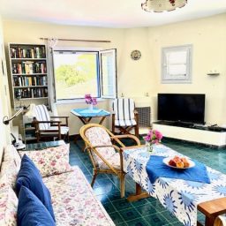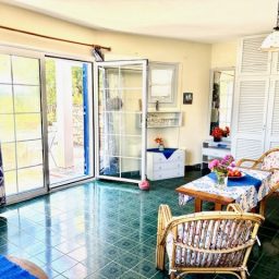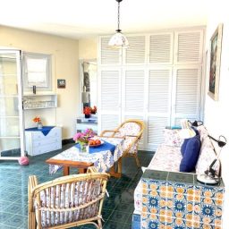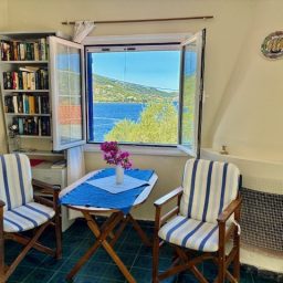 Die Villa bietet ein gemütliches Wohnzimmer mit einem Sitzplatz sowie einem Essplatz mit Meeresblick. Eine Schlafnische mit Doppelbett sowie eine Kitchenette mit Bad und Toilette gehören auch dazu. Drei Terrassen umrunden das Studio.